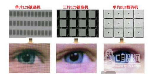 采用DLP技術的圖像畫面,更加細膩,接近照片的效果;但液晶(LCD)的圖像,則呈現一定的“紗窗效應”,影響了圖像的觀感及視覺清晰度。傳統的電影機采用膠片來成像,其圖像質量無疑算是最佳(無縫像素),而DLP在數字影像中,也是最接近膠片效果的。