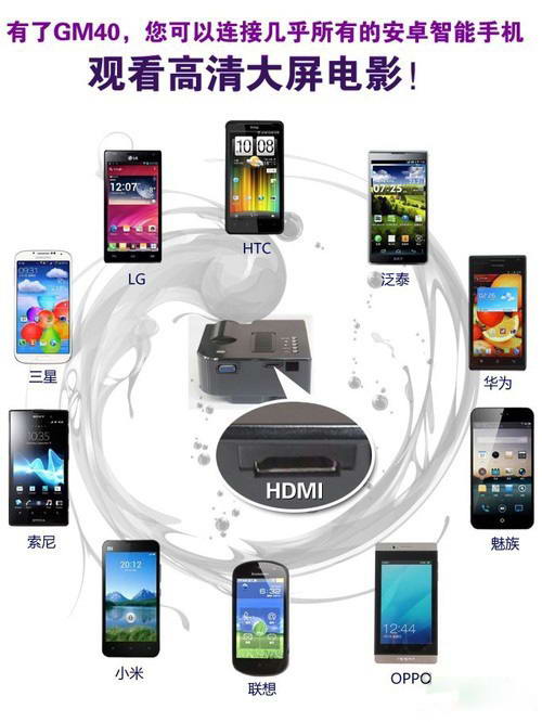 gm40微型投影機(jī)采用led光源,擁有480×320標(biāo)準(zhǔn)分辨率,亮度為50流明,1000:1高對(duì)比度。可連接安卓智能手機(jī)、平板電腦。可輕松與家人、朋友、同事等分享豐富的照片、視頻、電影、音樂(lè)、網(wǎng)絡(luò)資源、學(xué)習(xí)資料等。