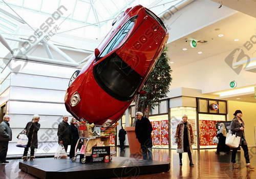 一輛上噸級的汽車站在一個小小的購物車上是多么新鮮、不可思議的事啊!我想應該不會有人不去駐足,低頭看這個是怎么做到的。最終,這個大膽、夸張,極富創意的廣告成功吸引了全場的消費者,把信息迅速高覆蓋的傳遞給所有路過的市民。這是一個稀奇的事,大部分市民還會大肆的去宣揚,因為Ta覺得這是一個值得分享的趣事……