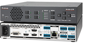 美國加利福尼亞州,阿納海姆市Extron 電子很高興地推出了 IN1604 DTP,這是一款符合 HDCP 標(biāo)準(zhǔn)、1U 高、半機(jī)架寬外殼的圖像解析度轉(zhuǎn)換器,具有 3 路 HDMI 輸入、1 路通用模擬視頻輸入和 1 路 DTP 輸出。IN1604 DTP 非常適用于安裝在會(huì)議桌下面和講臺(tái)里面,為本地信號(hào)源,如演示者的設(shè)備提供切換,并可通過 CATx 屏蔽電纜將信號(hào)延長至 100 m (330') 遠(yuǎn)的墻上或吊頂安裝的顯示設(shè)備。IN1604 DTP 提供了方便可靠的快速自動(dòng)切換功能,其高性能的圖像解析度轉(zhuǎn)換引擎能接收 HDMI 和模擬視頻信號(hào)源。IN1604 DTP 還具有許多用于控制和配置的音頻處理功能和其它功能選項(xiàng)。