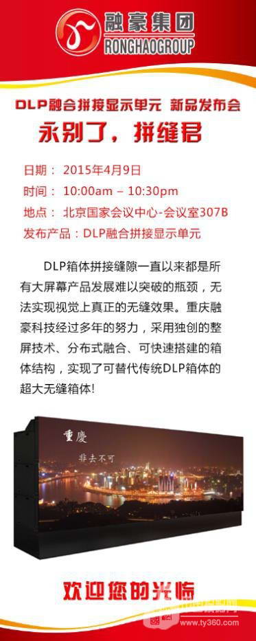 此次融豪集團推出的DLP融合拼接顯示單元,解決了傳統拼接的物理拼縫、光學拼縫的瓶頸問題,采用獨創的整屏技術,它既具有融合大屏幕的無縫高亮度的特點,又具備DLP箱體的標準化生產、現場安裝維護方便的特點,同時它采用高亮度的激光光源技術,具有超長壽命、高亮度、高對比度、色彩逼真的特點,達到世界領先水平。