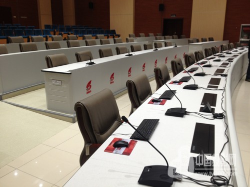 本項目屬于改造項目,廳堂為標準的矩形階梯式多功能廳。前期設計采用小型壁掛揚聲器擴聲,聲壓級較小并且聲場不均勻,語音不清晰,混響嚴重。因此天創為其選用先進的數字化網絡化系統,音源進入控制設備即轉換為數字信號,所有中間處理環節全部實現網絡數字化,調音控制、媒體矩陣包含了所有的音頻處理設備。從揚聲器選擇、音源采集設計、處理管理和會議管理等幾方面全面提升會議效果。