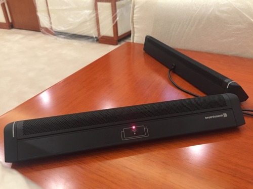另外在話筒的選擇上,由于接待廳在整體裝修風(fēng)格上比較高檔,因此常規(guī)的鵝頸話筒顯得比較突兀,無(wú)法和高檔的裝修風(fēng)格融為一體。另外話筒的拾音距離較遠(yuǎn),鵝頸話筒也無(wú)法實(shí)現(xiàn)需求。天創(chuàng)為其配置了兩只beyerdynamic專利的瑞樂(lè)圖技術(shù)話筒,集成了17只陣列麥克風(fēng) ,擁有走廊型的指向特性,保證了寬廣的拾音范圍和高質(zhì)的聲音。可以滿足發(fā)言人左右移動(dòng)或靠近遠(yuǎn)離話筒時(shí),均能實(shí)現(xiàn)理想的拾音效果,最終滿足了項(xiàng)目中的使用需求。