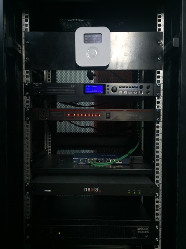該項(xiàng)目配置了一臺(tái)BIAMP Nexia作為核心音頻處理器,并采用了六只吸頂揚(yáng)聲器平均分布的擴(kuò)聲方式。接待廳主要以語(yǔ)言類擴(kuò)聲為主要形式,該廳堂座椅分布較廣,因此需要揚(yáng)聲器有較好的覆蓋,這樣可以保證揚(yáng)聲器覆蓋整個(gè)會(huì)場(chǎng)的聽(tīng)音區(qū)。另外由于兩個(gè)主要領(lǐng)導(dǎo)席位有拾音需求,為了兼顧最好的拾音效果和最佳的擺放方式,配置兩只瑞樂(lè)圖技術(shù)的話筒,可以完美的解決此問(wèn)題。為了在使用過(guò)程中方便調(diào)整各信號(hào)音量大小,系統(tǒng)還配置了一塊控制面板,以便直觀的實(shí)時(shí)調(diào)整個(gè)通道音量。
