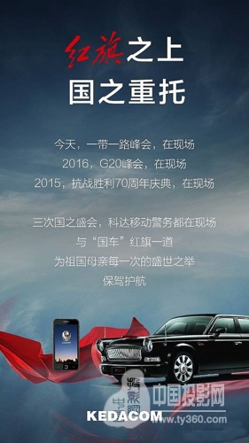 高朋滿座,共襄盛舉。無論是今天的“一帶一路”國際合作高峰論壇,還是2016年的G20峰會,2015年的抗戰勝利70周年大閱兵盛典,科達移動警務都在現場,與“國車”紅旗一道,在安保第一線,為祖國母親每一次的盛世之舉保駕護航。