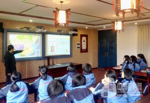 如果說(shuō)獨(dú)具人文氣息的氛圍是“數(shù)字化歷史教室”的“表”,那么“數(shù)字化”則是其“里”。教室正前方懸掛數(shù)字化歷史立體地形,采用先進(jìn)的投影技術(shù),可將立體地形圖配合多媒體動(dòng)畫(huà)課件使用,從時(shí)間和空間上更加清晰地呈現(xiàn)歷史事件。而在教室的后面,數(shù)字歷史沿革系統(tǒng)和數(shù)字歷史模型的使用,讓歷史變得更加“立體”。通過(guò)先進(jìn)的3D全息影像技術(shù),將歷史文物更加逼真生動(dòng)的呈現(xiàn)在學(xué)生面前,使得歷史教學(xué)更加栩栩如生。