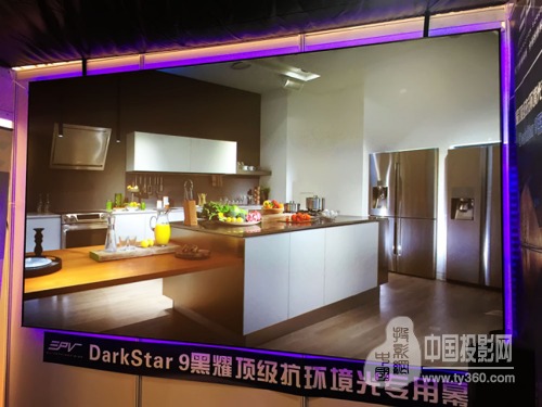 億立導(dǎo)入美國高端EPV系列的DarkStar 9™影院級光學(xué)抗環(huán)境光幕,表面成像圖層采用獨(dú)特抗光涂料制成,適用于FullHD及4K環(huán)境。本次展會這款幕布會搭配Sony 4K投影機(jī)旗艦機(jī)型,現(xiàn)場畫面效果驚人,色彩逼真,細(xì)節(jié)豐富。