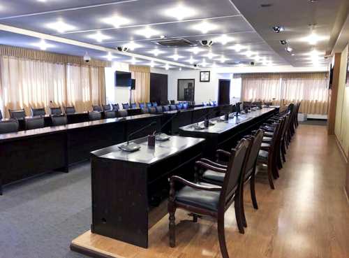 經過現場的施工建設和安裝調試,系統于近期投入使用。會議廳內桌位配有10寸平板無紙化終端和公信3300數字會議討論單元,參會人員可以通過點擊系統軟件實現報到、表決/選舉/評議、同步文檔演示、服務呼叫、文檔傳輸與翻查等多種功能。強大的配套功能,把繁瑣的會務工作變得高效便捷。