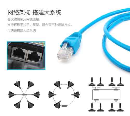 會(huì)議終端采用網(wǎng)線連接,與服務(wù)器連接后,支持環(huán)形手拉手、星型、混合型三種連接方式,可快速搭建大型系統(tǒng)。