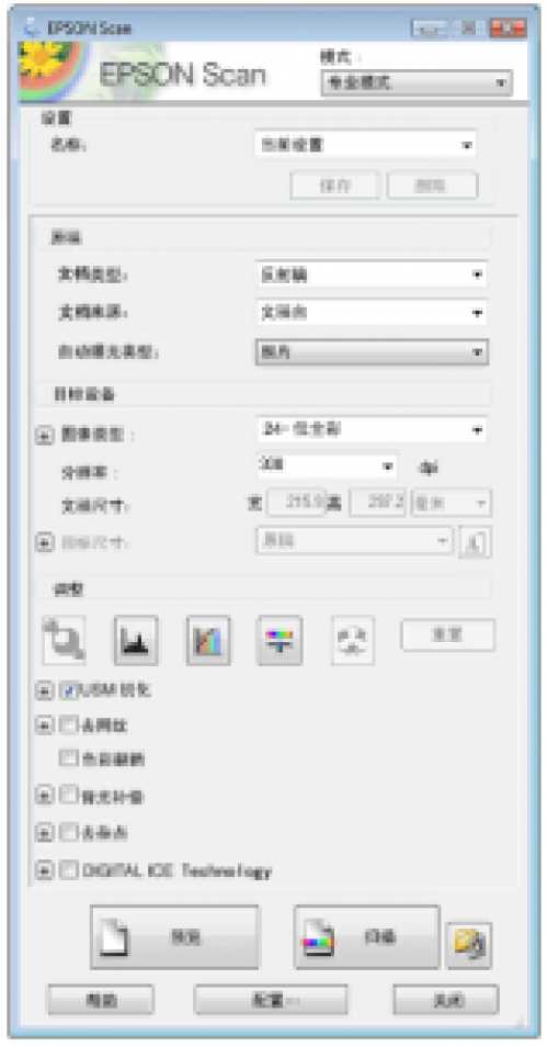 1)當(dāng)您選擇專業(yè)模式時(shí),將看到Epson Scan專業(yè)模式窗口。
