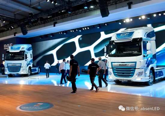 近期,世界上第一大商用車展、全球最古老的專業展覽會之一的漢諾威國際商用車及零部件展(IAA)在德國漢諾威隆重舉行,艾比森在DAF、大眾兩個展位打造的LED墻成為引爆展位的吸睛神器,客戶稱其為展位上最閃亮的明星,并表示更傾向于與艾比森這樣的高端品牌合作。