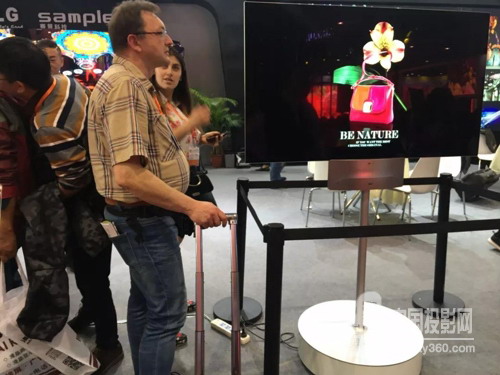 大熱門65寸雙面曲面—如藝術品一樣的數字標牌,成為展會一道亮麗的風景線。
