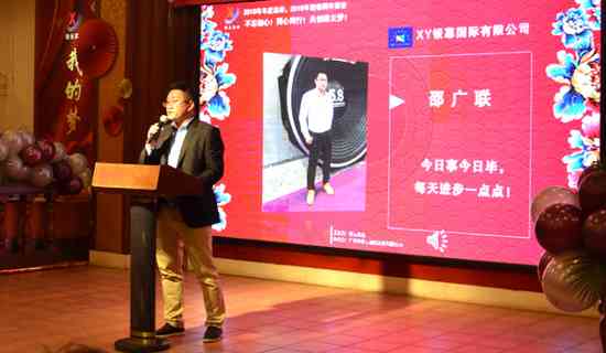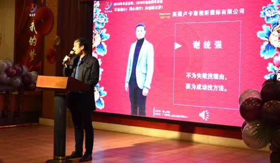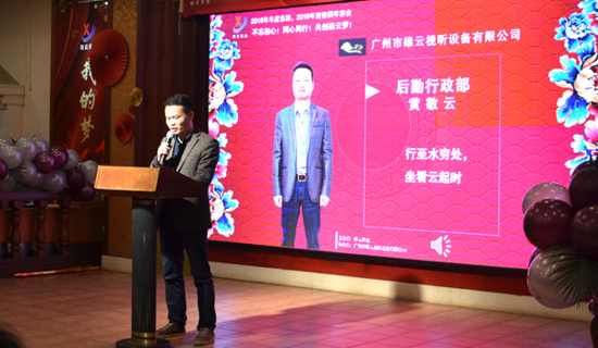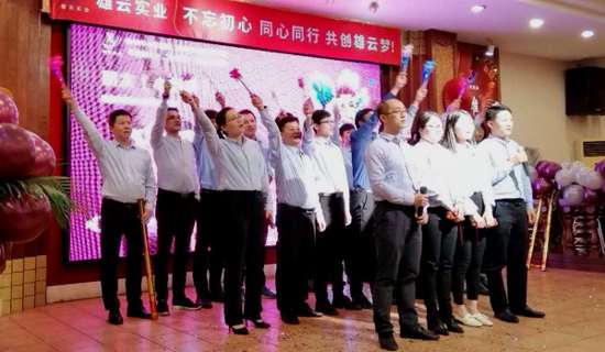 秦文君董事長上臺祝酒,引來全場陣陣掌聲!秦總說:“大家新年好”, 全體人員說:“好、很好、非常好,不忘初心!同心同行!共創雄云夢”;聲音震耳欲聾、久久回響!