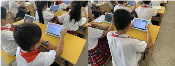 捐贈活動結束后,在學校領導及老師的引領下,各方代表到學校五年級二班參加希沃易課堂示范課展示活動。