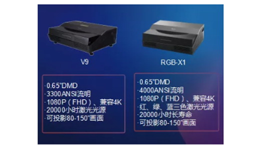 錄激光電視產(chǎn)品除了上述所說的“天鵝SWAN”M系列外,還有V9、RGB-X1機(jī)型可選。