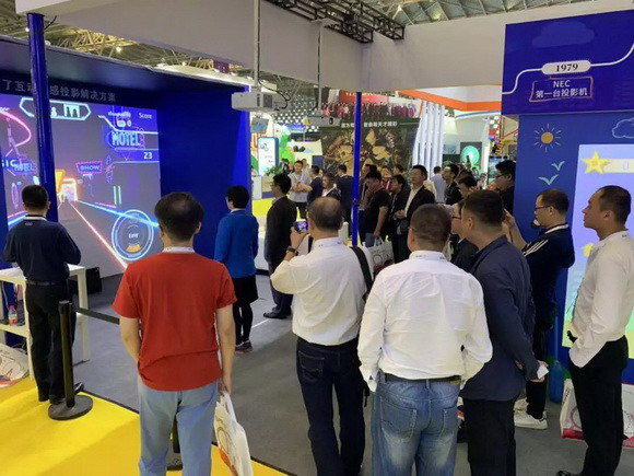 2019中國(上海)國際游樂設施設備博覽會上,鴻合科技代理的NEC旗下北極星、綠洲、空靈、女王等全系列工程投影機打造眾多互動娛樂展項,將前沿顯示技術與游樂場景相結合,吸引了眾多展會觀眾及嘉賓踴躍體驗。
