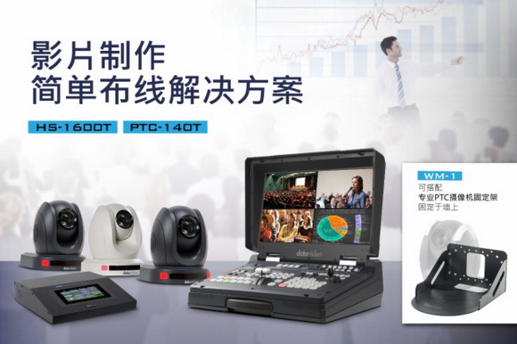 洋銘推出的全新極簡布線現場制作解決方案基于兩個新品——HS-1600T 4通道 HDBaseT 便攜式移動錄播演室和 PTC-140THDBaseT 云臺攝像機。兩者采用HDBaseT 技術,讓現場制作解決方案變得更為方便簡單,特別是在布線環節上。