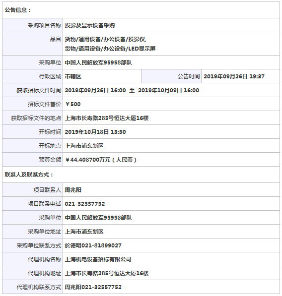 中國投影網投影機資訊 來源:上海機電設備招標有限公司 2019-10-18 13:30:00 編輯:影子 [