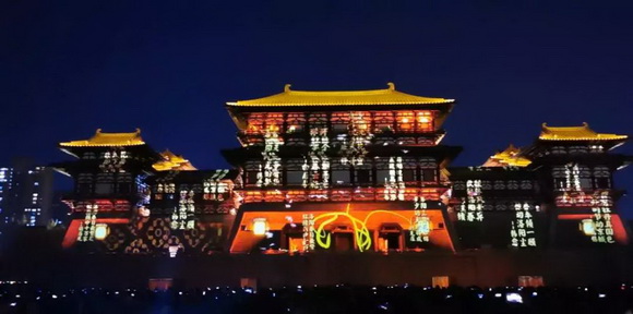 2019年9月13日,隋唐洛陽城宮城正南門-應天門正式開城,當晚,在應天門樓上上演了一場美輪美奐的城墻樓體投影秀,氣勢恢宏的大唐城樓在投影畫面的襯托下格外的炫美壯麗。8萬余人聚集于廣場欣賞了這場大秀,熱鬧非凡。對于洛陽市,則迎來了向文旅轉型的全新節點。