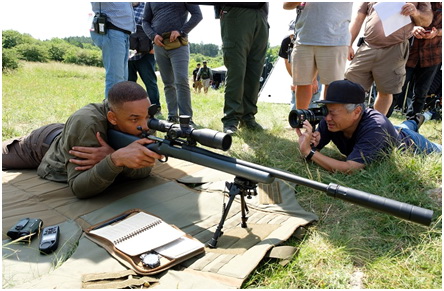 李安導(dǎo)演與威爾史密斯在《雙子殺手》拍攝現(xiàn)場(chǎng)(圖片由派拉蒙影業(yè)Ben Rothstein提供)