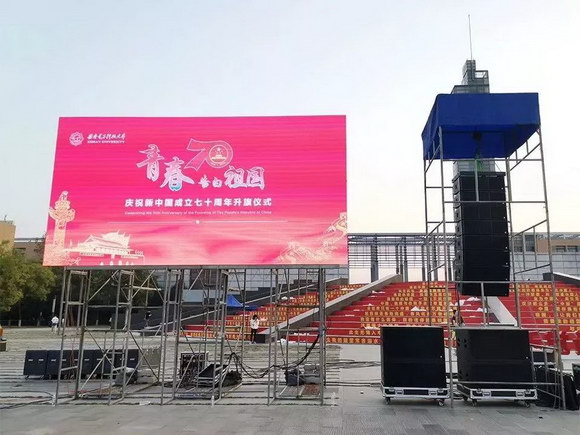 陜鋼集團領導以及各部門負責人、干部職工代表1000余人一起共同祝福祖國70華誕。其擴聲系統選用了銳豐智能“RF”VT310線陣列揚聲器系統,以及周邊設備等產品。