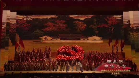 9月29日,慶祝中華人民共和國成立70周年文藝晚會《奮斗吧 中華兒女》音樂舞蹈史詩在北京人民大會堂完美落下帷幕。現場4000多名觀眾同時觀看演出,共同回顧新中國成立70年來的輝煌歷程,共同祝福偉大祖國的美好前程。