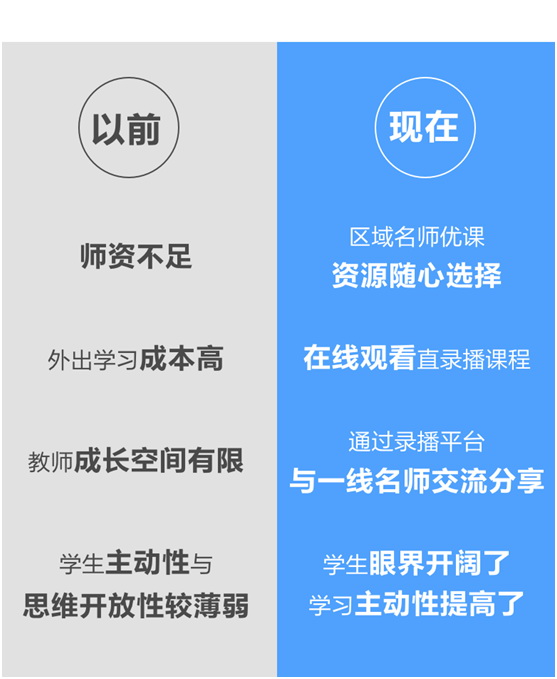 “以前義烏市主要做基礎建設的均衡,如多媒體設備、實驗設備。錄播教室主要改變了教學上的均衡!绷x烏市教室研修院技術保障部主任宋榮罡談到。