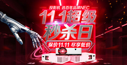 11月1日至11月11日,NEC多款超高性價比投影產品,將在天貓旗艦店和京東自營店同步掀起價格直降的鉅惠高潮。線上活動參與機型包括CD1100、CD1110、CD1101X、CD1100X、CD1010H、CD2120X、V302WC、CD3105H等多款熱銷投影機。