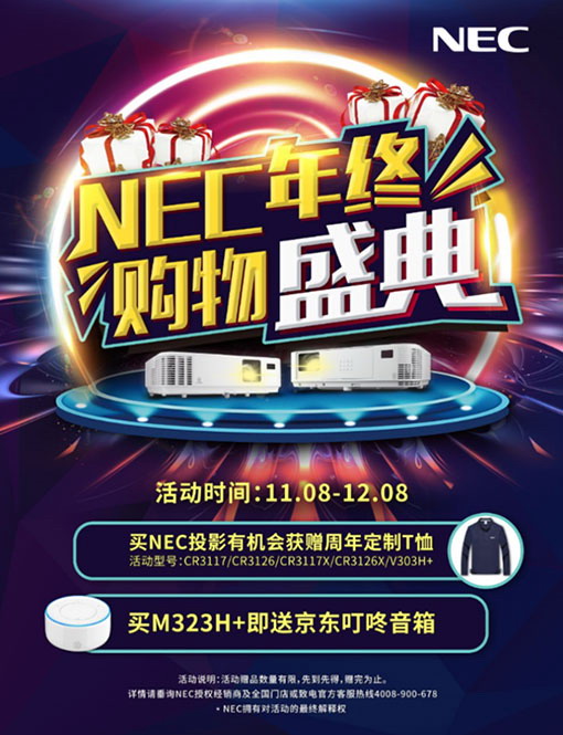 無論習慣于線下體驗式購買,還是電商便捷選購,NEC“年終購物盛典”都精心準備了多款優選投影機產品,在NEC 120周年與NEC顯示產品40周年之際,為客戶帶來最大的驚喜和福利,讓我們共同期待。