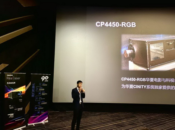 張晗先生介紹道:科視全新的 RealLaser™ 品牌,旨在實(shí)現(xiàn)影城全 RGB 安裝的目標(biāo)。目前,我們已經(jīng)與華夏電影合作定向開發(fā)了 CP4450-RGB,為華夏 CINITY 系統(tǒng)獨(dú)家提供的放映機(jī)型。