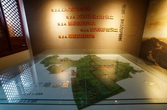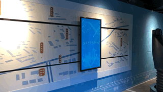 △ 展廳內的滑軌設備演示了西北旺鎮域內北清路沿線的重點項目,滑軌的屏幕可以來回滑動,當滑動到相應點位時,可以自動播放該項目的圖片和文字簡介。
