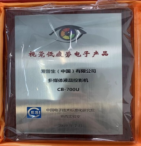 2019年7月30日下午視覺(jué)聽(tīng)覺(jué)健康發(fā)展論壇在蘇州金雞湖國(guó)際會(huì)議中心舉辦。論壇上,中國(guó)電子技術(shù)標(biāo)準(zhǔn)化研究院賽西實(shí)驗(yàn)室正式發(fā)布《視覺(jué)低疲勞電子產(chǎn)品評(píng)測(cè)技術(shù)規(guī)范》。規(guī)范分功能和性能兩大部分,圍繞人眼觀看顯示設(shè)備可能引發(fā)疲勞感或不舒適感的指標(biāo)以及不同顯示設(shè)備特性做了相應(yīng)技術(shù)要求。論壇上還公布了首批通過(guò)評(píng)測(cè)的企業(yè)及產(chǎn)品,發(fā)布首批視覺(jué)低疲勞電子產(chǎn)品認(rèn)證證書(shū)。共有9家公司14種產(chǎn)品獲獎(jiǎng),愛(ài)普生CB-700U激光超短焦投影機(jī)獲得了這一榮譽(yù)。同時(shí),愛(ài)普生(中國(guó))有限公司是本次獲得證書(shū)的唯一一家外資企業(yè),也是唯一投影機(jī)廠家。