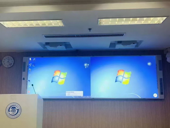 用2臺16:10的投影機連接電容白板一體機,可實現超寬屏應用
