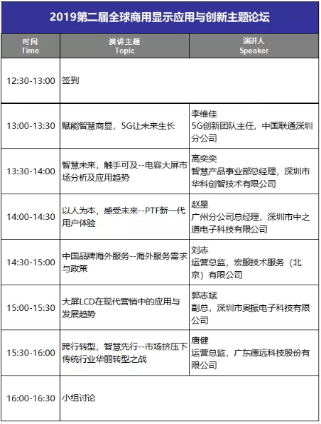 2019第二屆全球商用顯示應用與創新主題論壇