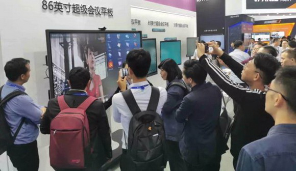 皓麗還攜帶了最新一代M4超級會議平板及皓麗智慧+解決方案參展。據皓麗業務經理曹經理介紹,皓麗超級會議平板具備六機合一、多屏互動、遠程視頻會議等多樣功能,操作智能簡單,豐富會議形式,能顯著提高企業溝通的效率。