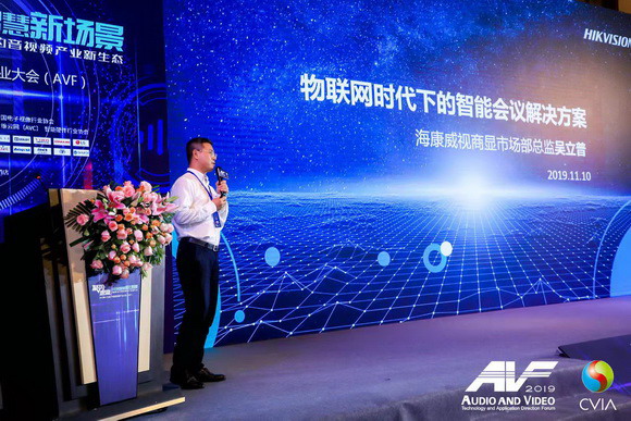 在本次會上,海康威視商顯市場部總監吳立普做了主題為《物聯網時代下的智能會議解決