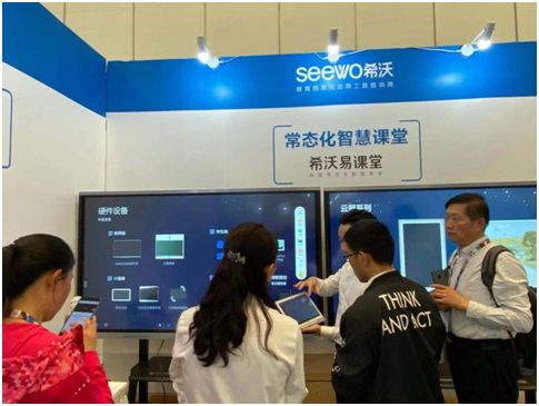 作為本次教博會的支持單位,希沃不僅為現場100多家參展單位提供了借機服務,也攜希沃易課堂、希沃校園屏顯、希沃信鴿等產品方案亮相,為教育裝上創新“引擎”。