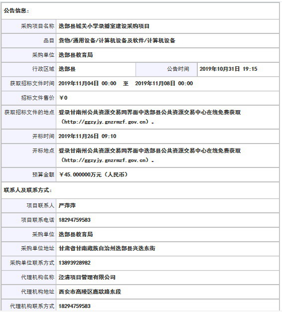 采購項目名稱: 迭部縣城關小學錄播室建設采購項目