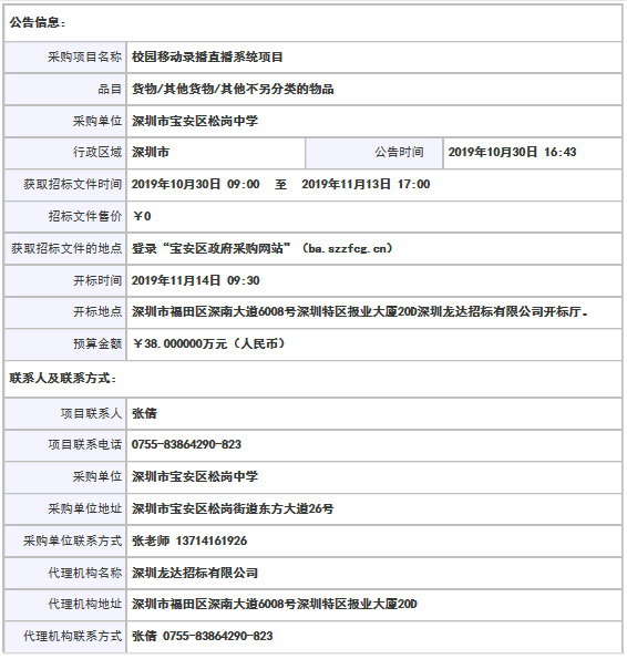 開標地點: 深圳市福田區深南大道6008號深圳特區報業大廈20D深圳龍達