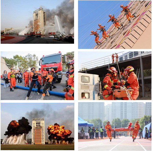 據悉,此次全國性比武分為3天預賽和1天決賽,來自全國各地的31支消防救援參賽隊的899名消防指戰員需要通過4x100米消防接力、破障梯次內攻操、鐵人四項、400米綜合越障操等8個項目的比拼來角逐屬于各自地區的榮譽,一展“火焰藍”鐵軍風采。國內比武余溫未消,國際比武接踵而至,來自馬來西亞、老撾、尼泊爾、新加坡等國家,以及中國澳門和香港地區的13支專業消防救援隊伍與中國內地救援隊一起開展模擬地震救援演練。最后舉行的滅火救援實戰演習模擬的是一個化工園發生連鎖火災爆炸事故,所有參演的消防指戰員通力協作、科學救援,完成滅火救援。