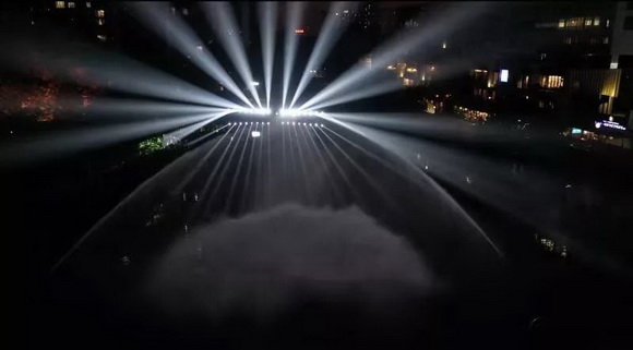 該項目由鴻合工程顯示團隊攜手合作伙伴為其精心打造,全套水秀表演由1臺NEC雙色激光工程投影機NP-PH3501QL+以背投的方式向水幕投射影像,結合30臺光束燈與震撼的音響效果,呈現出這場絕妙的科技與藝術結合的表演。
