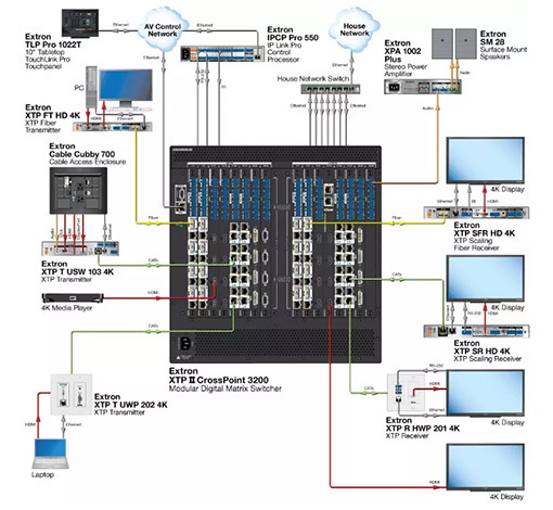 Extron 非常高興地推出 XTP II CP 4i HD DMA 4K PLUS。 這是一款可支持 4 路 HDMI 輸入及立體聲音頻連接的 XTP® 多通道音頻混音輸入板。 它符合 HDCP 2.2 標準,支持高達 18 Gbps 的數據速率,和 4K/60 帶 4:4:4 色度取樣的視頻分辨率。 多通道音頻信號可通過 HDMI 切換,并支持向下混音至雙通道 PCM 音頻,以實現在系統內獨立的路由。 同時,立體聲音頻可被嵌入至視頻信號中,方便切換及延長。此款輸入板可兼容所有的 XTP 矩陣切換器型號,通過將輸入信號切換至 XTP 輸出板,實現本地及遠程信號路由。 此類特性使得 XTP II CP 4i HD DMA 4K PLUS 成為可支持多通道音頻混音、4K/60 視頻以及在 XTP® 系統內靈活分配音頻信號的最佳解決方案。