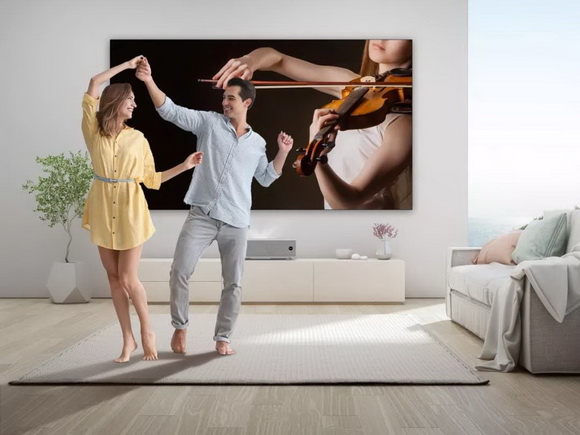 美貌是魔力,讓人樂于體驗。賞心悅目的明基BenQ i960L讓人想每天多看半小時電視。激光電視i960L機身上方是光澤恒久的金屬滑蓋,前臉則是采用針織工法的布面材料,材質富有變化,色彩和諧統一,就像是一座微縮的簡約建筑坐落于客廳。而掛在墻上的超薄、超窄邊框屏幕,擁有灰色幕面,簡約自然,融合家居。