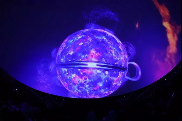 這里有10臺NEC 4萬流明高端投影機,打造的30米直徑的半球形銀幕