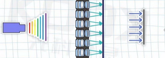 四層結(jié)構(gòu)當(dāng)中最為復(fù)雜的便是微透鏡組合層,它是通過大量的微透鏡組合構(gòu)建的一個(gè)光路調(diào)制層,每一個(gè)微透鏡的材質(zhì)、結(jié)構(gòu)都會(huì)影響到最終的成像效果,所以需要經(jīng)過精心的光路設(shè)計(jì)和材質(zhì)選配,就像設(shè)計(jì)一顆相機(jī)鏡頭一樣。而這樣復(fù)雜的微透鏡結(jié)構(gòu)并不是只有一個(gè),而是需要密密麻麻的布滿在整個(gè)微透鏡組合層。
