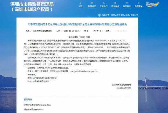 本次標準創新示范基地評選,是深圳市市場監督管理局根據市委市政府《關于開展質量標準提升行動推動高質量發展的實施方案(2019-2022年)》(深發〔2019〕11號)文件精神,依據《2019年政府工作報告》“計劃在全市評選5個標準創新示范基地以更好對接國際標準和中國標準的先行落地”的具體要求,旨在加快建立新技術新產品快速標準化機制的有力舉措。