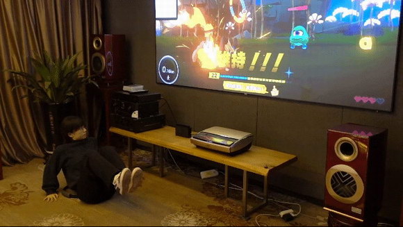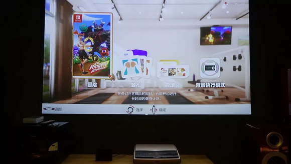 是的沒錯,只要把switch連上堅果S3,就可以解鎖大屏沉浸式體感娛樂健身新模式——窩在家里玩游戲,燃燒你的卡路里!
