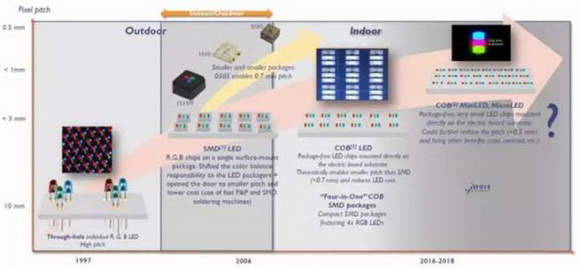 在這情況下,不管是企業推出COB小間距顯示屏或Mini LED,它的初衷都是為了更好地解決小間距LED顯示屏目前所面臨的困境。