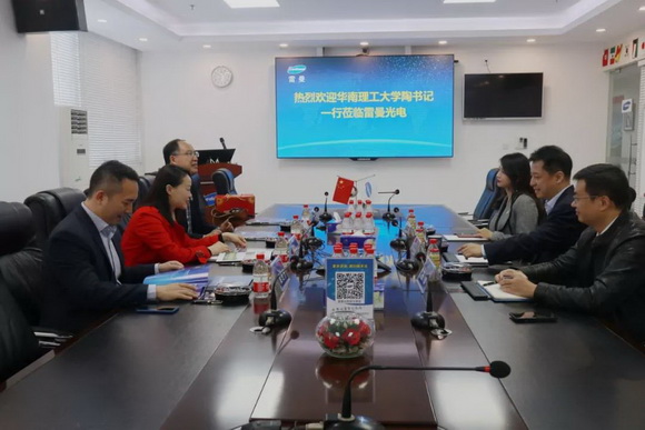 2019年12月25日,華南理工大學(xué)黨委副書記、學(xué)校校友會常務(wù)副會長陶韶菁女士率華南理工大學(xué)校友工作處領(lǐng)導(dǎo)一行走訪考察雷曼光電。雷曼光電董事長兼總裁李漫鐵本科畢業(yè)于華南理工大學(xué)無線電技術(shù)專業(yè),是華南理工大杰出校友代表之一。