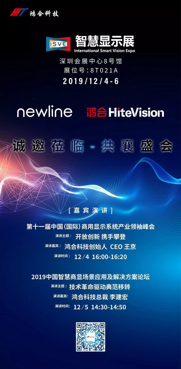 12月4-6日,第十一屆中國(國際)商用顯示系統產業領袖峰會、2019深圳(國際)智慧顯示系統產業應用博覽會將在深圳會展中心舉辦。鴻合科技攜智能交互設備領域知名教育品牌鴻合HiteVision參展,展位號:8T021A,誠邀您蒞臨指導,品鑒鴻合科技專為教育信息化發展研發的智慧教育新成果。